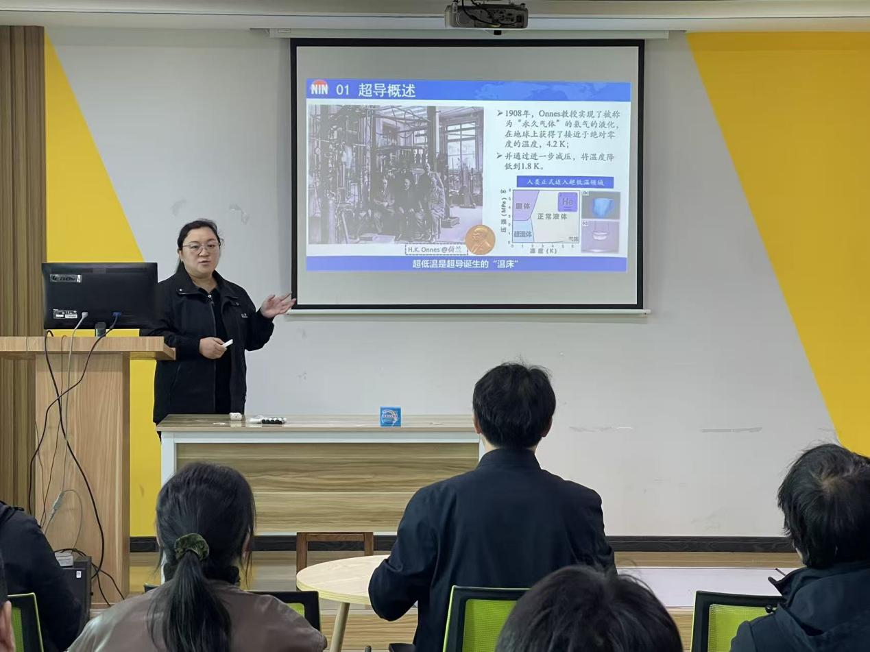 信阳师大新闻网讯 10月22日,应物理电子工程学院邀请,西北有色金属研究院张胜楠教授在理科楼北507报告厅作了题为《实用化超导多芯线材制备技术研究进展》的学术报告。报告会由该院院长龚克主持,学院部分教师及研究生聆听报告。