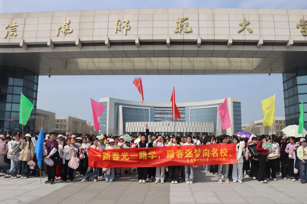信阳师大新闻网讯 春风送暖,书香满径。3月25日,淮河校区迎来息县第十七小学(一小分校)千余名师生到校开展研学活动。作为此次活动的承接方,校区高度重视、周密部署,由党政办公室、学生工作部、致学书院协同配合,组织教师与学生志愿者全程陪同引导,为小朋友们打造了一场有温度、有深度、有意义的大学校园之旅。