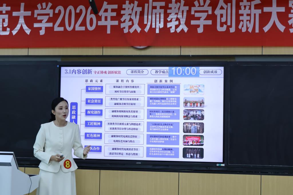 信阳师大新闻网讯 3月22日,学校2026年教师教学创新大赛决赛在教九楼207、208教室举办。