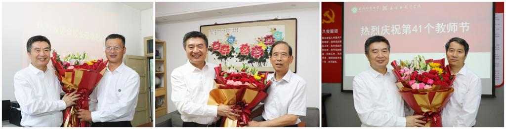 信阳师大新闻网讯 在第41个教师节来临之际,9月9日,校长余本海、校党委副书记龚立新、副校长井强山开展教师节走访慰问,向全校教职工致以亲切问候和节日祝福。党委办公室、校长办公室、人事处、离退休职工管理处等部门负责人陪同。