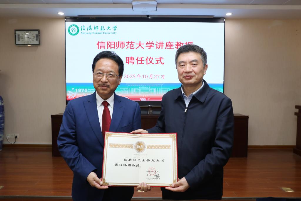 信阳师大新闻网讯 10月27日,我校在化学楼举行王金安院士讲座教授授聘任仪式。校长余本海出席仪式并向王金安院士颁发聘书,副校长井强山主持仪式,化学化工学院党政负责人参加。