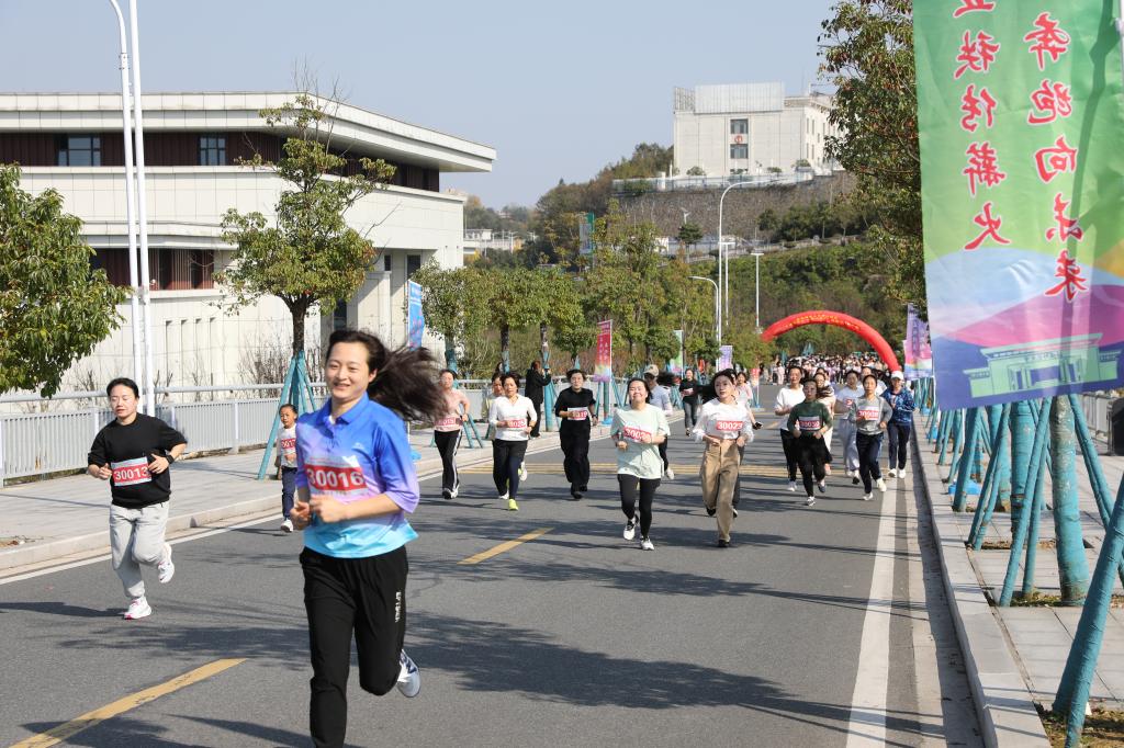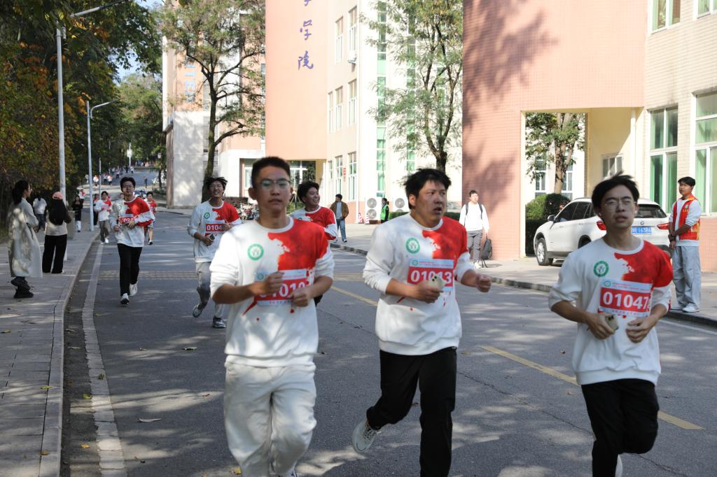 在全体师生的热切瞩目下,王文鹏庄严宣布:“比赛开始!”刹那间,师生如潮水般从谭山校区北门奔涌而出,激情开跑。初冬的微寒掩不住高涨的热情,每一位参赛者都精神抖擞、步伐有力,跃动的身影掠过秋叶铺就的跑道,穿梭于如诗如画的校园美景中。沿途此起彼伏的加油声、欢呼声与奔跑的脚步声交织共鸣,汇成一曲蓬勃向上的青春乐章,生动诠释了师大人“五秩风华正青春”的豪迈气概与奋进激情。