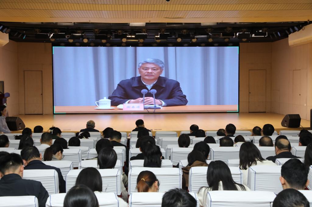 信阳师大新闻网讯 11月4日,我校开展2025年党员基本培训第二次集中大课,学习中央党校(国家行政学院)分管日常工作的副校长(副院长)谢春涛主讲的“中国共产党与中华民族伟大复兴”专题报告。本次大课在理科楼报告厅设置主会场,谭山校区、淮河校区、信阳理工学院共设置27个分会场,全校3000余名党员参加。校党委副书记龚立新主持大课。