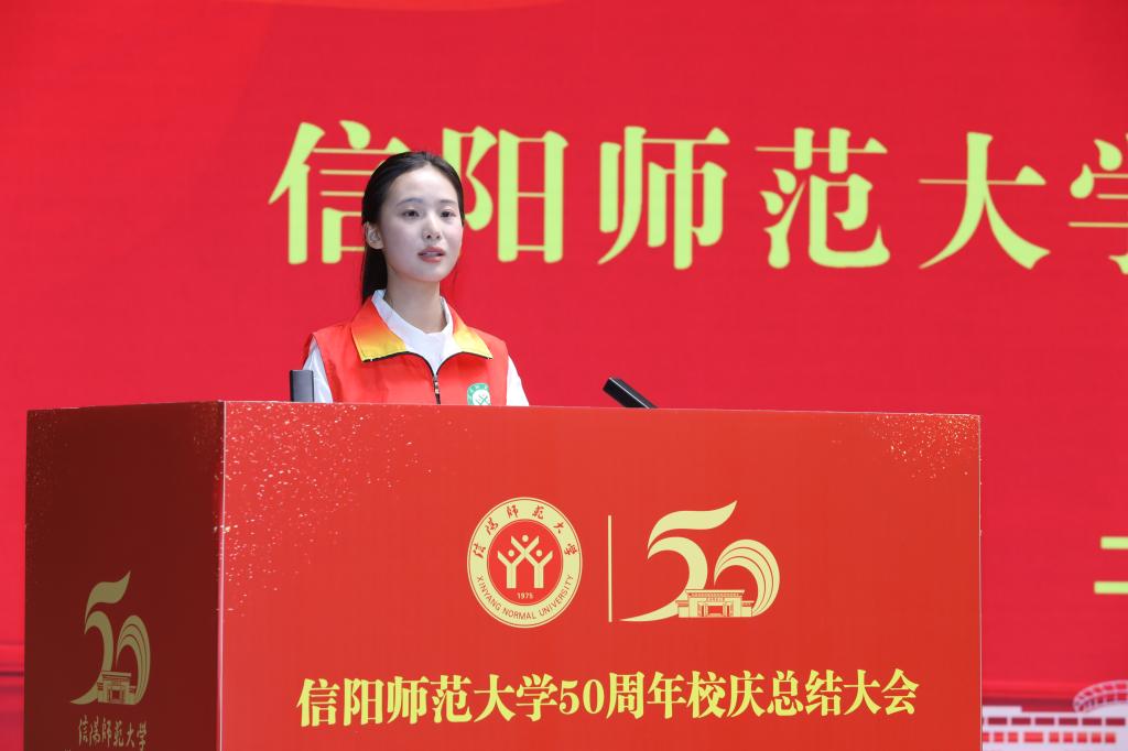 校史编撰与校史馆建设牵头领导、副校长朱晓东,学术论坛牵头领导、副校长涂友超,晚会组负责人胡波,工会副主席张克友,离退休教职工代表李俊,教师代表古瑞华,联络员代表刘珺,校友代表、1993级中文专业校友、信阳师范大学郑州校友会会长张亚军,学生代表于思源进行了交流发言,深情回顾了50周年校庆的难忘经历,分享了自己的感悟和体会。