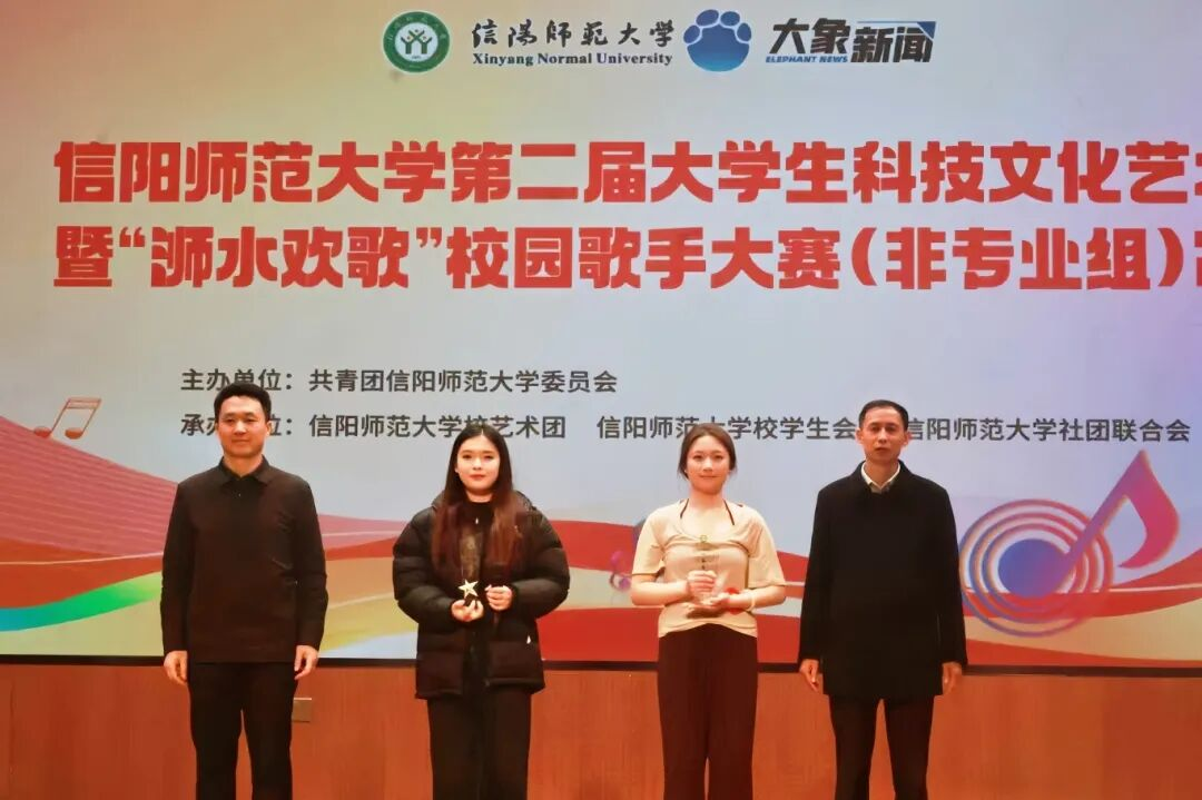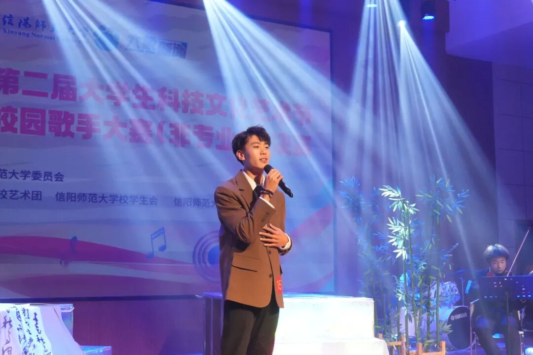 信阳师大新闻网讯 11月21日晚,由校团委主办、大学生艺术团、校学生会和社团联合会协办的第二届大学生科技文化艺术节暨“浉水欢歌”校园歌手大赛(非专业组)决赛在逸夫楼报告厅举行,校党委副书记、工会主席岳宗德,副校长朱晓东出席活动。
