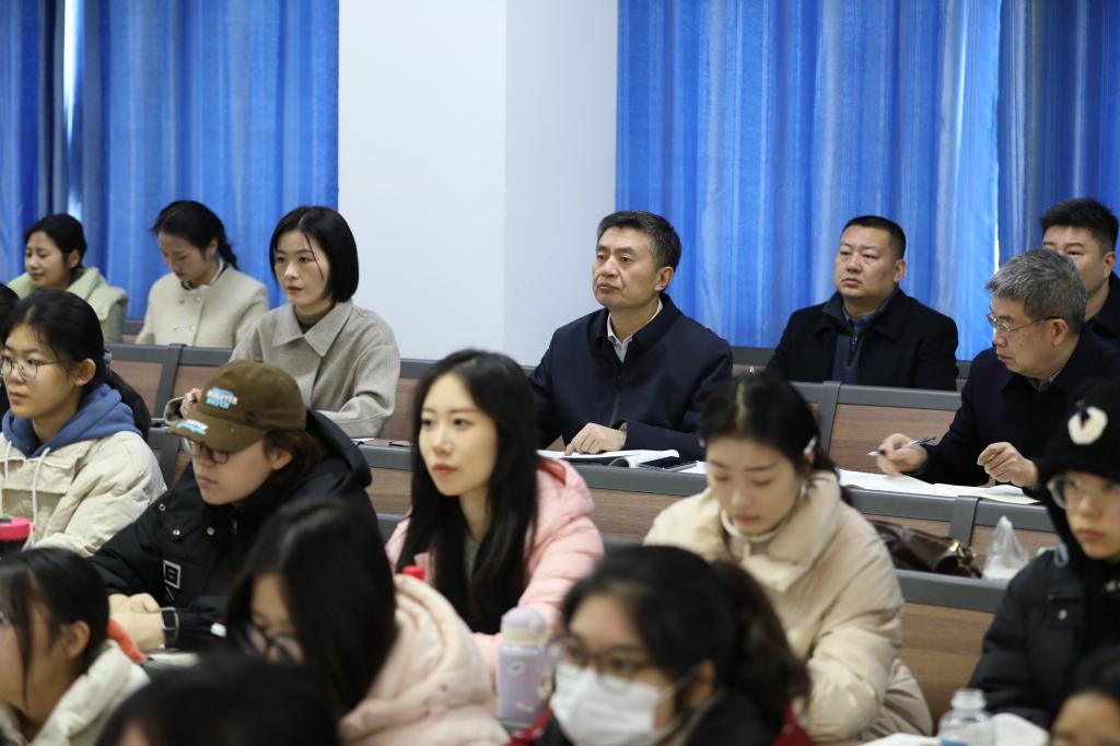信阳师大新闻网讯 12月10日,校长余本海带领党委宣传部、教务处、马克思主义学院相关负责同志,以随机听课形式开展思政课教学调研与指导,实地把脉课堂教学质量。