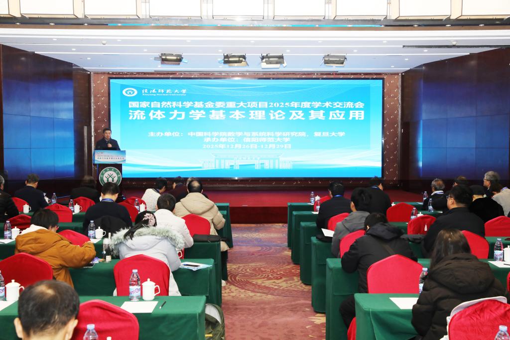 信阳师大新闻网讯 12月27日,由中国科学院数学与系统科学研究院和复旦大学主办,我校承办的“流体力学数学理论及其应用”学术研讨会顺利开幕。来自国家自然科学基金委员会数理学部、澳门大学、复旦大学、南京大学、上海交通大学、武汉大学、香港中文大学、中国科学技术大学、中国科学院数学与系统科学研究院,中山大学等20余所高校和科研院所的80余位专家学者,校长余本海、副校长王娟出席会议。数学与统计学院领导班子以及部分师生共同参加。开幕式由国家重大项目主持人、中国科学院数学与系统科学研究院研究员张立群主持。