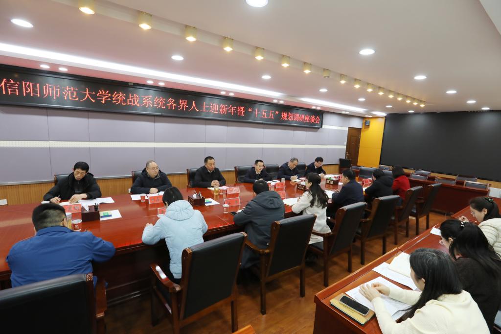 信阳师大新闻网讯 辞旧迎新聚共识,同心筑岸谱新篇。12月30日,我校在行政楼401会议室召开统战系统各界人士迎新年暨“十五五”规划调研座谈会。学校各级人大代表、政协委员代表,各民主党派基层组织、统战团体负责人,铸牢中华民族共同体研究基地学者和党外代表人士欢聚一堂,共迎新年,共谋发展。