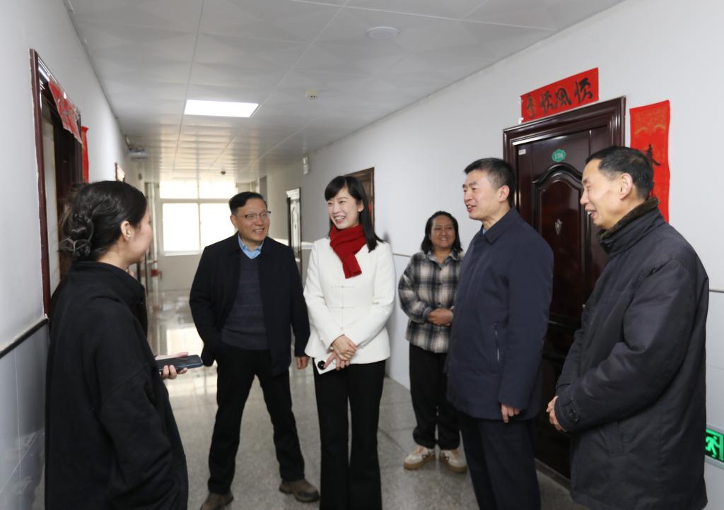 信阳师大新闻网讯 金马迎春新元启,情暖一线护平安。正月初一上午,校长余本海,校党委副书记、工会主席岳宗德,副校长王娟深入基层一线,亲切看望慰问节日期间坚守岗位的值班值守人员和留校留学生代表,向他们致以诚挚的新春祝福和节日问候。