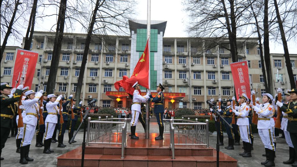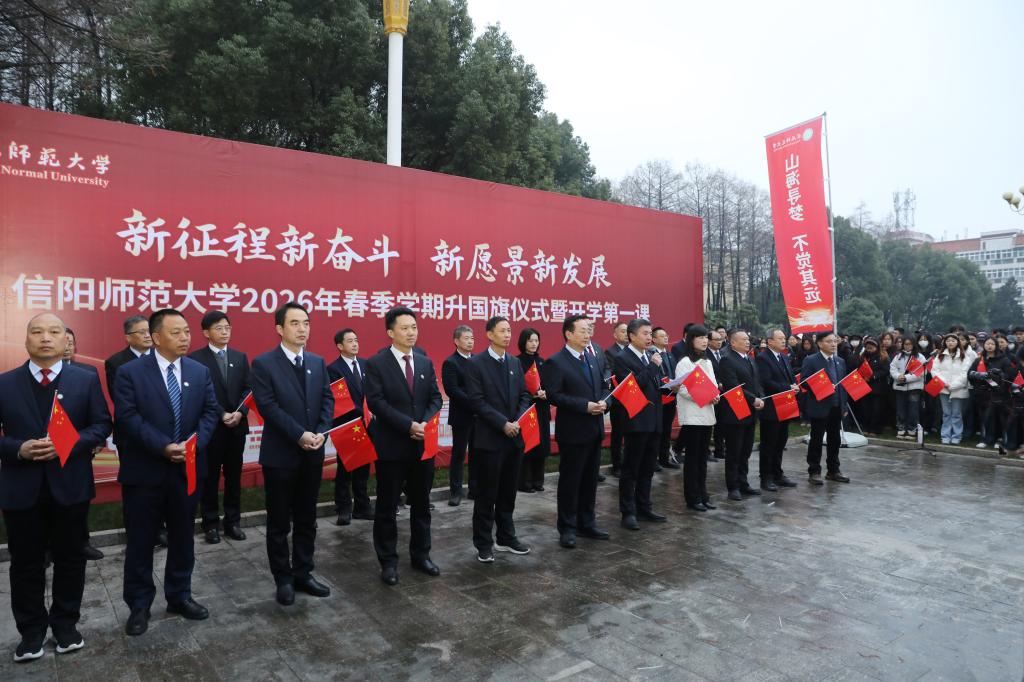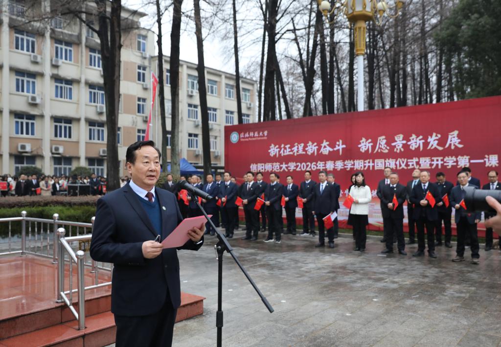 信阳师大新闻网讯 3月2日清晨,我校在明德广场隆重举行2026年春季学期升国旗仪式暨开学第一课。全体校领导、相关职能部门负责人、各学院党委书记、副书记、辅导员及3000余名学生代表共同参加。仪式由校长余本海主持。