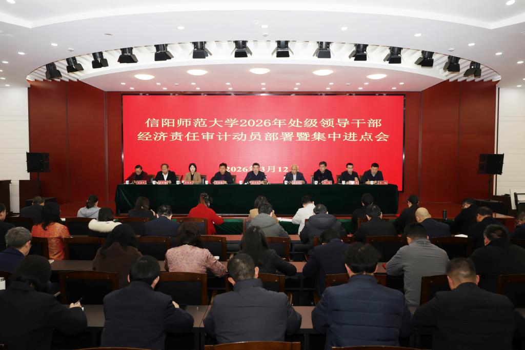信阳师大新闻网讯3月12日,学校在艺术楼报告厅召开2026年处级领导干部经济责任审计动员部署暨集中进点会。校长余本海,校党委副书记龚立新,校纪委书记、监察专员李荣胜出席会议,学校经济责任审计工作领导小组成员、被审计处级领导干部和所在单位负责人以及审计组全体成员参加会议。会议由龚立新主持。