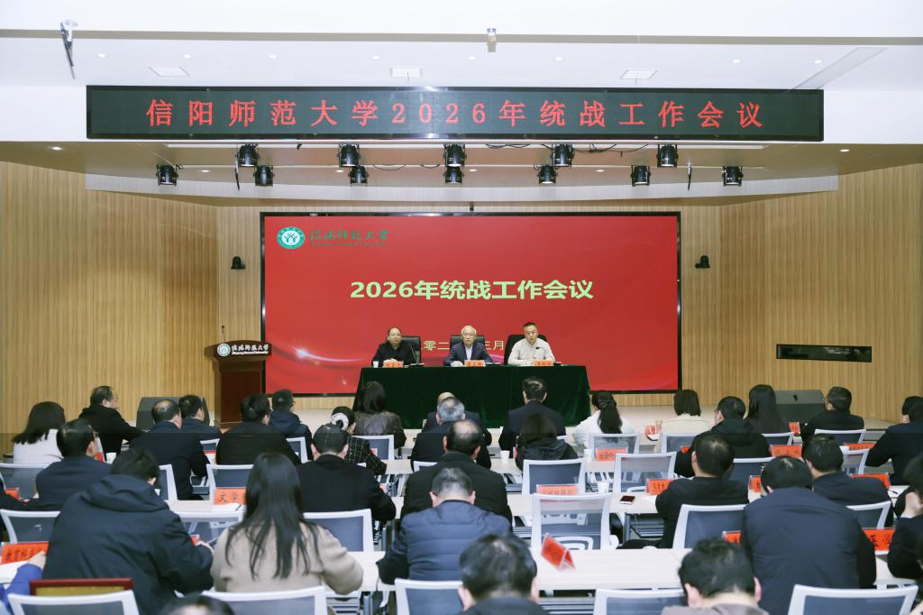 信阳师大新闻网讯 3月17日,学校在博雅讲堂召开2026年统战工作会议,传达全国、全省统战工作会议精神,总结2025年工作,部署2026年任务。党委副书记龚立新出席会议并讲话,党委常委、统战部部长李向阳主持会议。