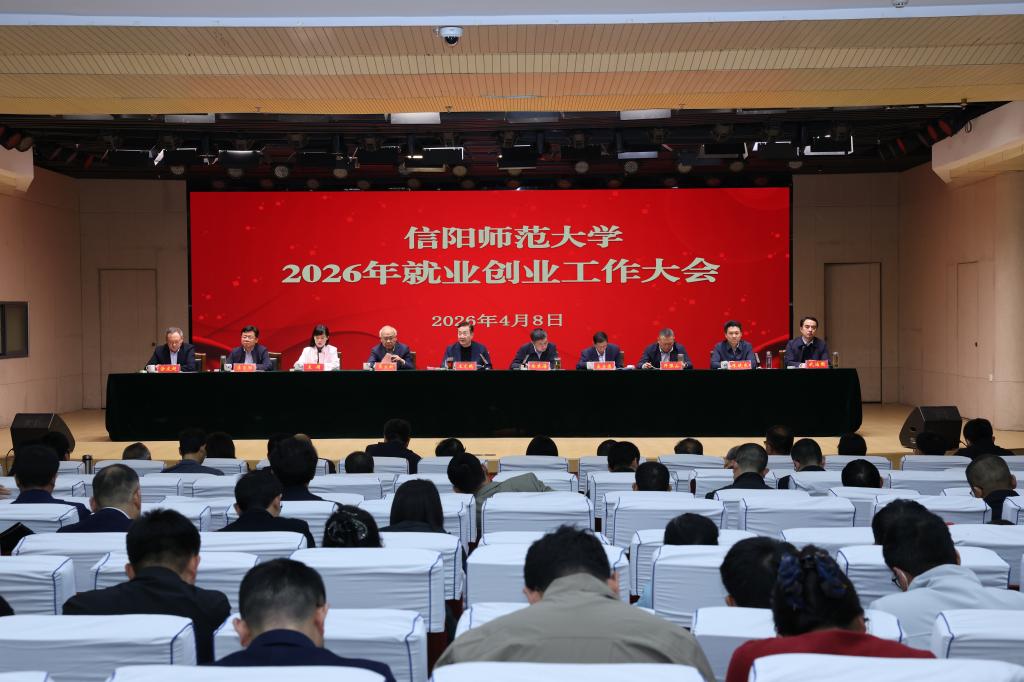 信阳师大新闻网讯 4月8日,我校在理科楼报告厅召开2026年就业创业工作会议。全体校领导出席会议,校就业创业工作领导小组成员、各学院(书院)党政负责人、分党委副书记、就业秘书、毕业班班主任及辅导员参加会议。会议由校长余本海主持。