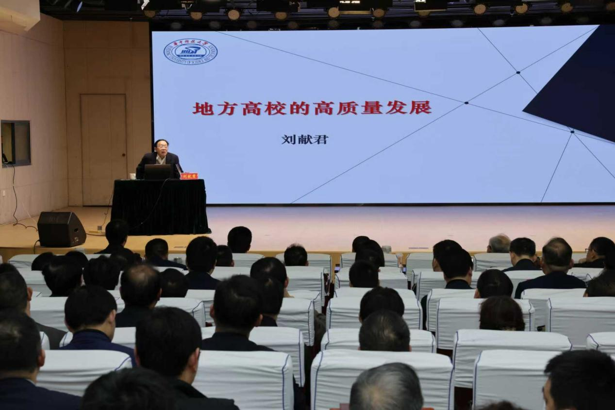 集中理论培训环节,浙江外国语学院宣勇教授以“锚定‘十五五’战略目标 深化高校综合改革”为题,紧密结合党的二十届四中全会精神与新时代高等教育发展大势,系统阐释了高校内部治理变革的逻辑起点、实施路径与核心任务,为学校纵深推进综合改革、科学谋划长远发展提供了坚实理论支撑与清晰实践路径。华中科技大学刘献君教授聚焦地方高校高质量发展,从共性生存与特性发展相统一、使命理念与精神铸魂相融合、产教融合与校地协同相促进、战略规划与闭环管理相衔接四个维度精准破题,为学校持续深化内涵建设、全面提升治理效能把脉定向、启思增智。参训学员集中观看了中央党校(国家行政学院)谢春涛教授的视频课程《“十五五”时期是基本实现社会主义现代化的关键时期》,深化了对未来五年战略机遇和风险挑战的系统认知。