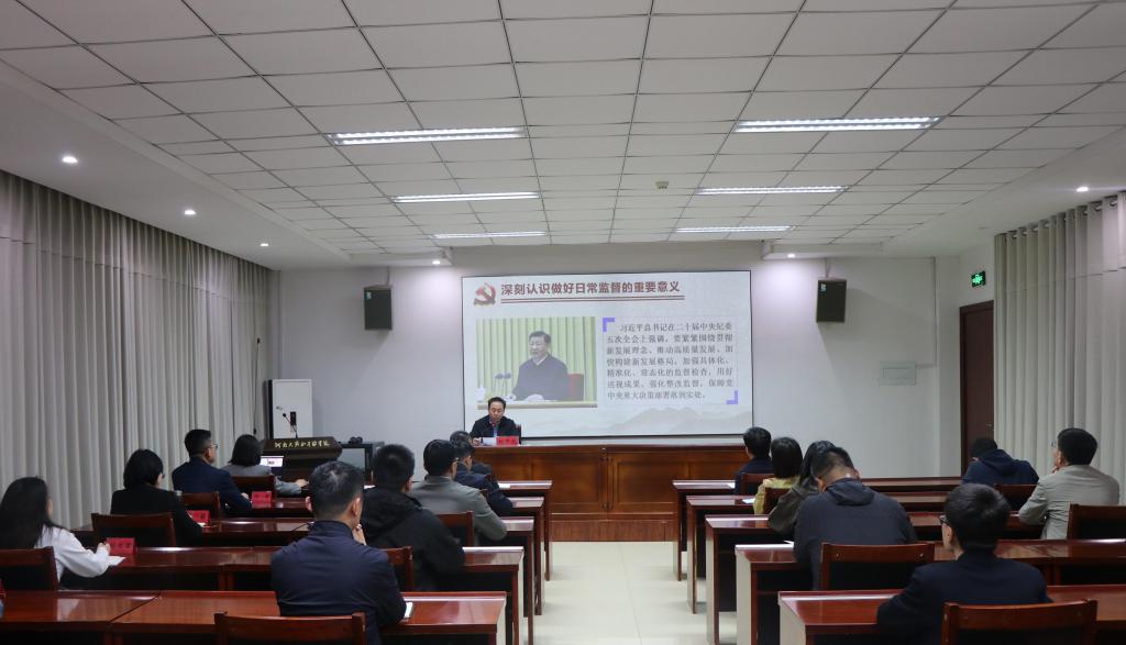 信阳师大新闻网讯 4月10日,省纪委监委第七监督检查室主任刘中元应邀为我校纪检监察干部作专题报告。报告会由校纪委书记、监察专员李荣胜主持,纪委、监察专员办公室全体人员聆听报告。
