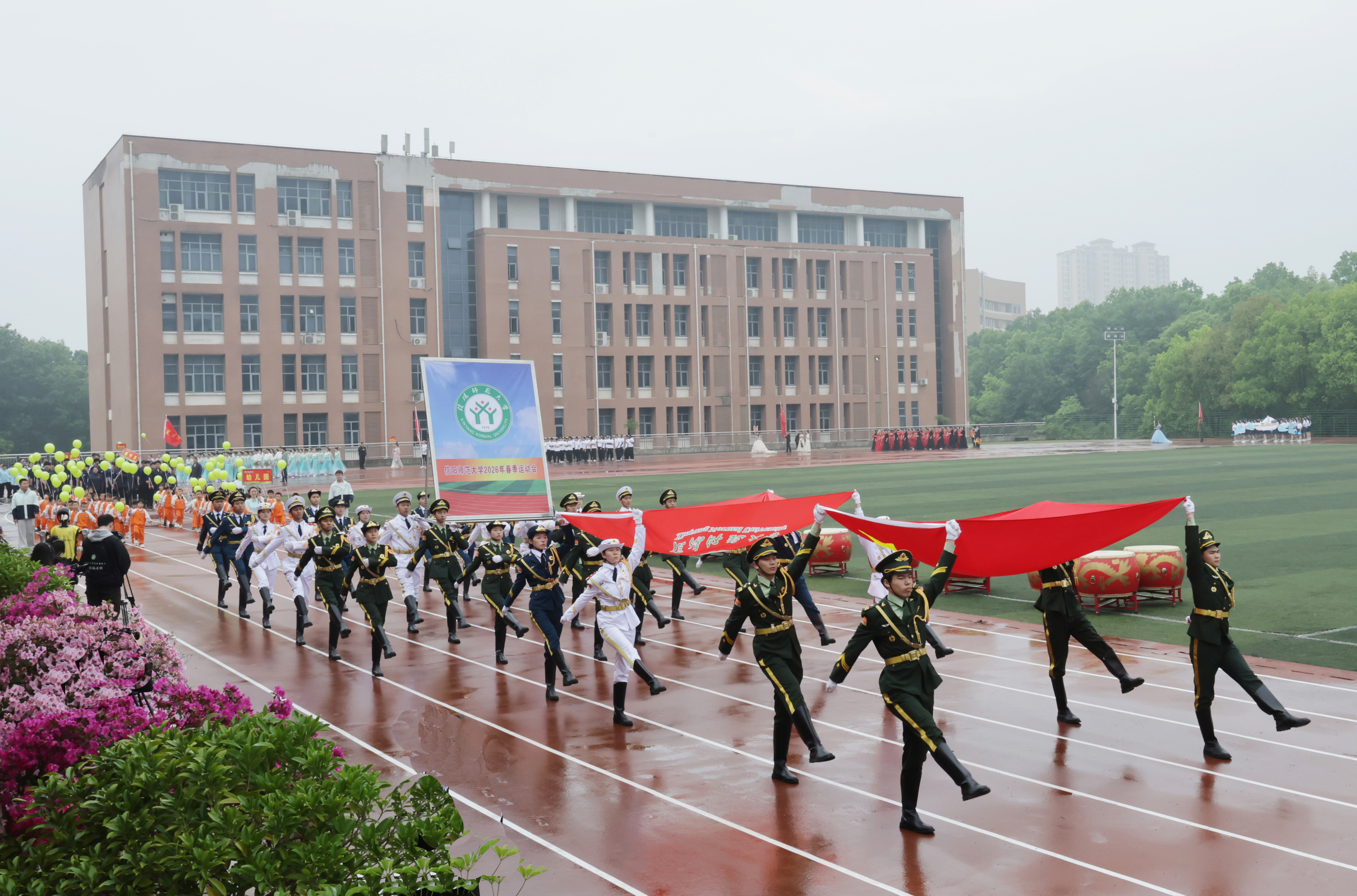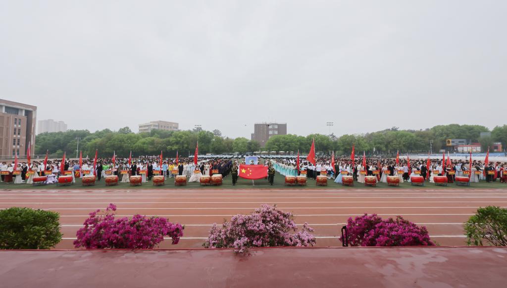 信阳师大新闻网讯 4月16日,我校2026年春季运动会在北田径运动场开幕。校党委书记王文鹏,校长余本海,党委副书记、工会主席岳宗德,副校长王娟,纪委书记、监察专员李荣胜,副校长涂友超,运动会组委会负责人,相关职能部门、各学院负责人出席开幕式。全体运动员、裁判员和各学院书院、校区师生代表参加开幕式。开幕式由王娟主持。
