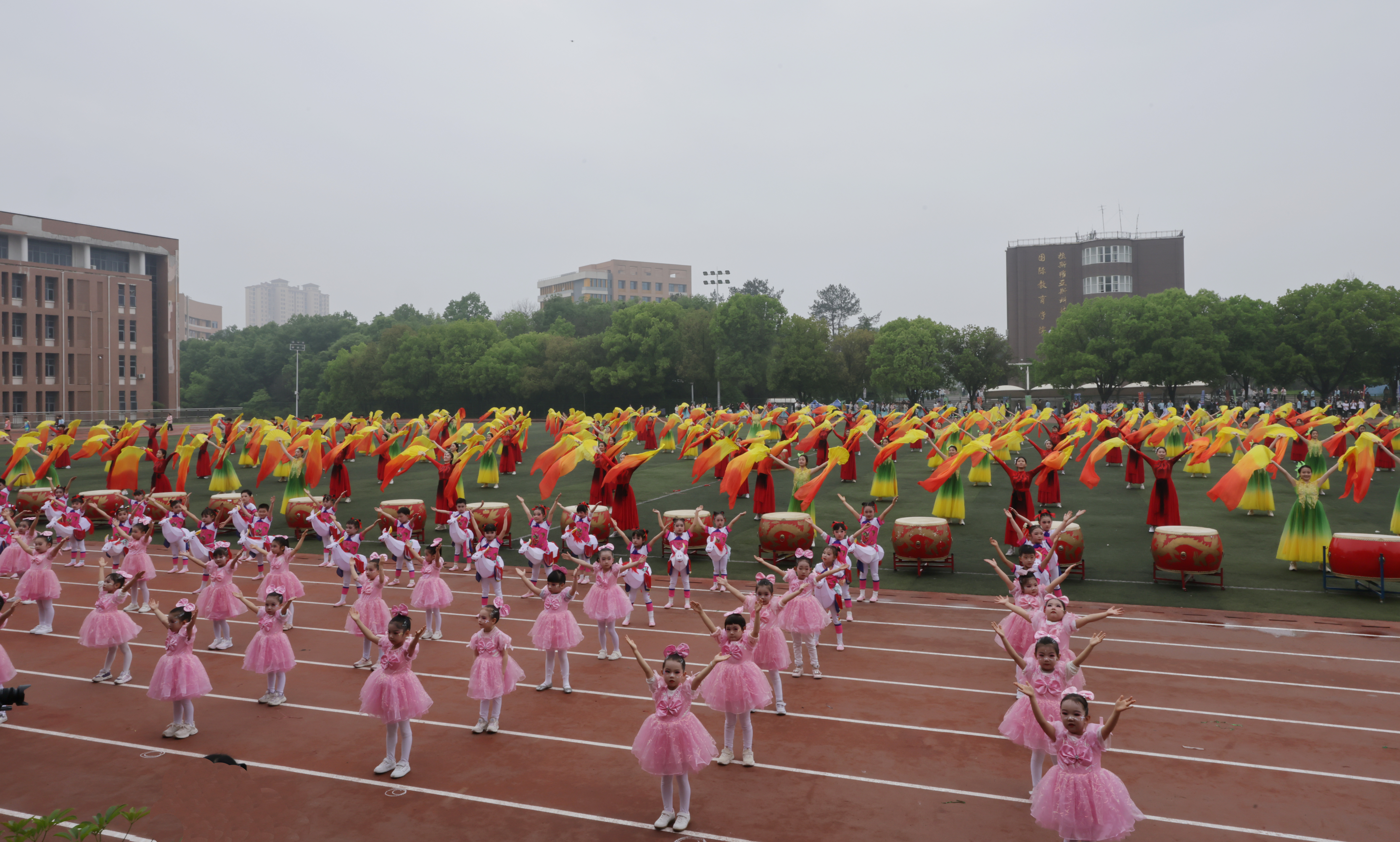 在师生团体表演阶段,全校600名教职工带来健身操表演《舞动中国》,用活力诠释师者风采,用律动彰显教育力量。他们步伐铿锵有力,传递着立德树人、强国有我的赤诚心声。“师者如光,微以致远;心向暖阳,风华绽放。”这场由校工会选编、各战线教职工联袂献上的表演,不仅是一次风采展示,更是一次凝心聚力的集体宣誓——以教育兴邦为己任,以立德树人为初心,在新时代新征程上,向着教育强国的目标阔步前行。音乐与舞蹈学院与幼儿园带来的舞蹈《跃马青春 欢歌飞扬》,以“跃马”为意象,将体育精神与青春梦想熔铸于灵动舞姿之中。同学们以骏马腾跃之势,踏破春风,以春潮奔涌之声,奏响拼搏乐章,生动诠释了“跃马扬鞭追日月,欢歌逐梦向未来”的蓬勃朝气与“以青春之名、赴时代之约”的赤诚担当。