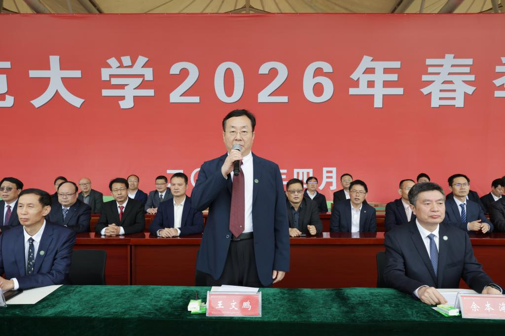 余本海强调,当前学校正处于全力冲刺博士学位授予单位建设和“十五五”开局的关键期,希望全体师生把赛场上的激情转化为干事创业的动力,以昂扬姿态迎接挑战、开创未来。一是树牢“健康第一、终身锻炼”的理念。全体师生要争当全民健身的宣传者、引领者、践行者,让“每天锻炼一小时、健康工作五十年、幸福生活一辈子”理念融入日常、化为习惯。二是发扬“顽强拼搏、奋勇争先”的精神。全体运动员要始终坚持“友谊第一、比赛第二”的体育风尚,尊重对手、尊重裁判,赛出真实成绩、赛出应有水平、赛出师大人独特风采。三是秉持“公正执裁、恪尽职守”的准则。全体裁判员要严格遵守竞赛规则和裁判员纪律,尊重参赛选手,秉公执裁,自觉维护裁判员良好形象。四是践行“团结协作、无私奉献”的担当。全体工作人员和志愿者要认真做好赛事统筹、后勤保障、医疗救护和安全防护等工作,用微笑传递温暖,用行动诠释奉献。最后,他预祝2026年春季运动会圆满成功,预祝全体运动员取得优异成绩。