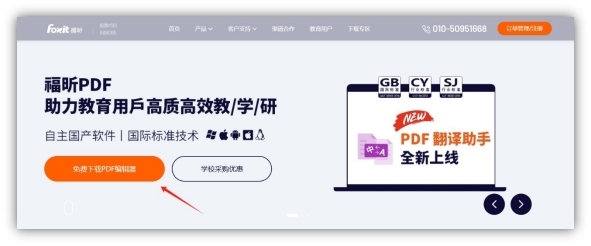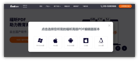 在下图轮播图处,点击“免费下载PDF编辑器”,选择Windows、Mac或Linux版本进行下载;