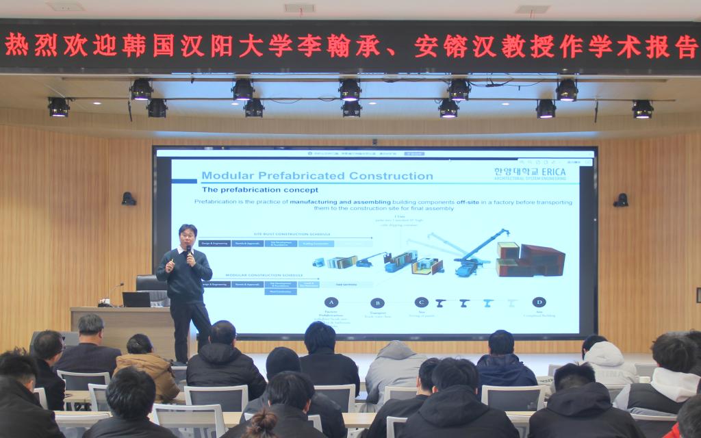 信阳师大新闻网讯 12月17日,应建筑与土木工程学院与国际教育学院邀请,韩国国家工程院院士Lee Han-Seung教授、汉阳大学Ahn Yong-Han教授,在博雅讲堂为建筑与土木工程学院硕士研究生和国际教育学院土木工程专业本科生作学术报告。报告会由建筑与土木工程学院院长周葆春与国际教育学院院长刘林超共同主持。