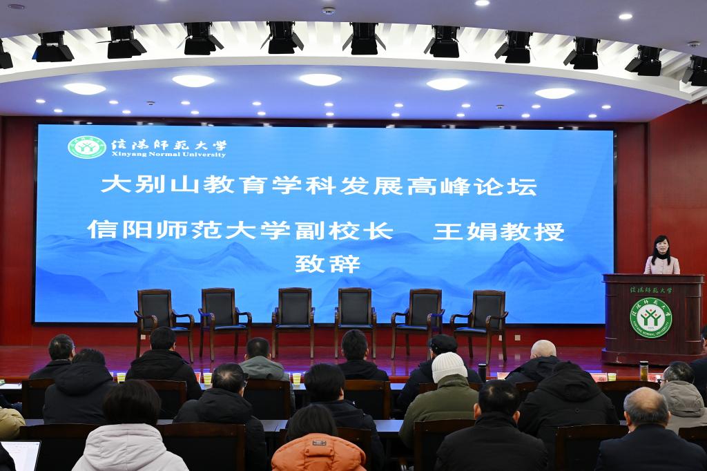 信阳师大新闻网讯 1月24日,我校举办“大别山教育学科发展高峰论坛”。北京师范大学、华中师范大学、华南师范大学、南京师范大学等省内外的知名高校教育专家应邀出席,副校长王娟出席开幕式并致辞,教育科学学院院长何安明主持开幕式,全校100余名师生参与了此次论坛。