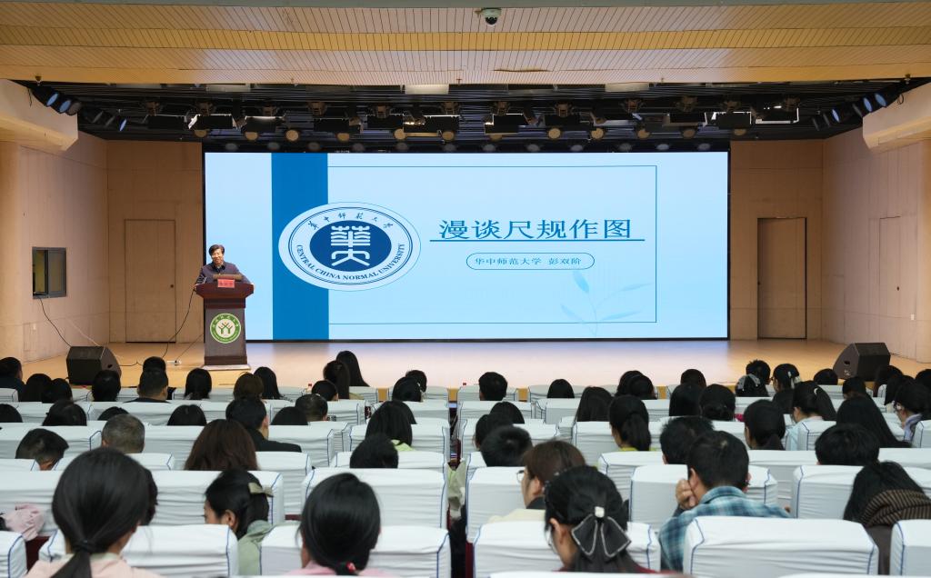 信阳师大新闻网讯 3月29日,华中师范大学校长彭双阶教授在理科楼报告厅做了题为《漫谈尺规作图》的科普报告。报告会由副校长王娟教授主持,我校理工科学院部分师生与信阳市部分中小学教师共同聆听了报告。