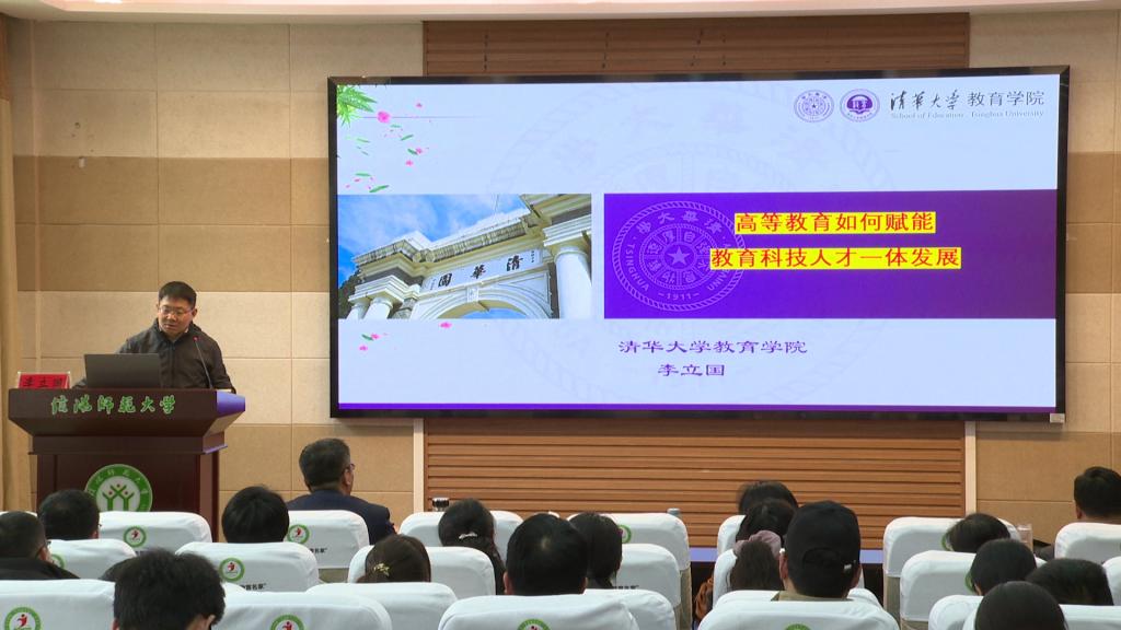 信阳师大新闻网讯 4月3日,由教育科学学院主办的“当代中国百名教育名家”大讲堂开讲。清华大学教育研究院博士生导师李立国教授、山西大学中国社会教育研究院院长侯怀银教授分别作题为《高等教育如何赋能教育科技人才一体发展》《中国特色现代教育学体系的发展与创新》的学术报告。