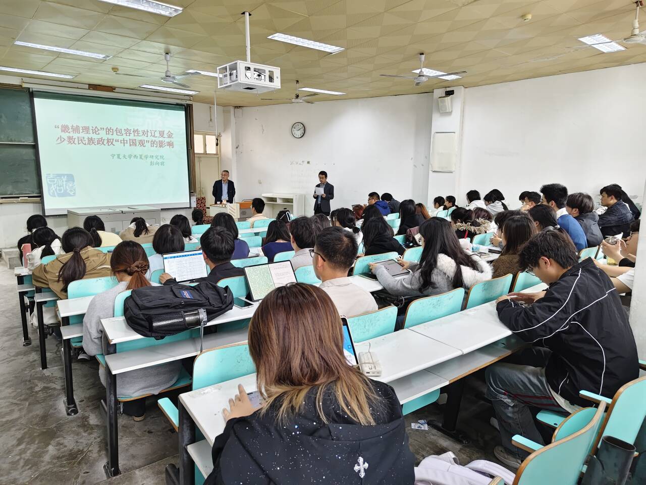 信阳师大新闻网讯 4月7日,宁夏大学彭向前教授应邀在人文楼609教室作了题为《“畿服理论”的包容性及其对辽夏金少数民族政权“中国观”的影响》的学术讲座。讲座由历史文化学院副院长李志坚主持,百余名师生参加。