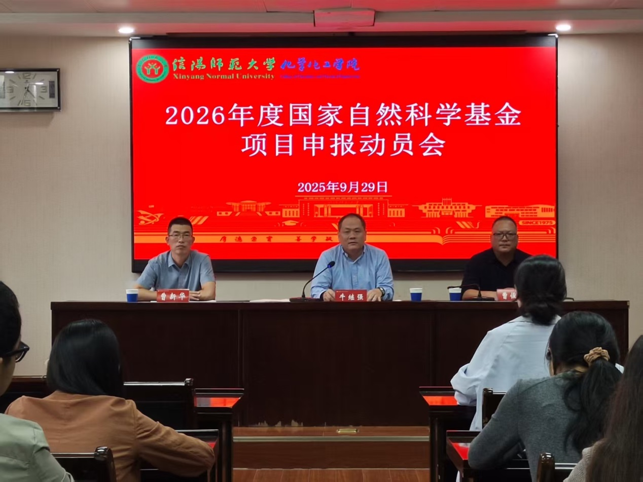 信阳师大新闻网讯 9月29日,化学化工学院召开2026年度国家自然科学基金申报动员会。科学技术处处长牛继强,该院部分领导及全体博士教师参会。