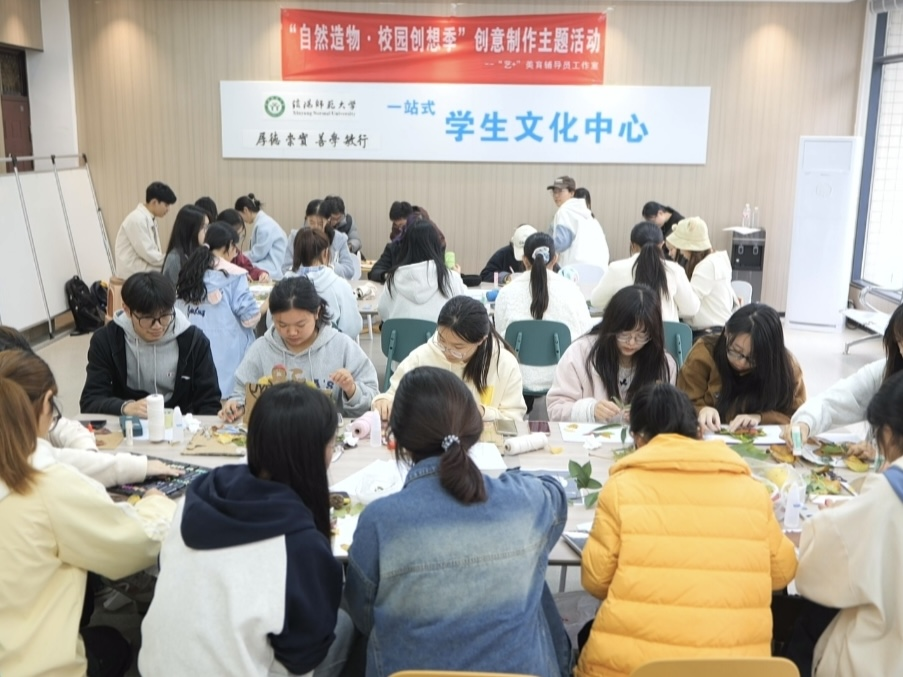 信阳师大新闻网讯 秋风执画笔,落叶染墨香。10月18日至19日,秋美师大“自然造物·校园创想季”落叶创意制作主题活动在“一站式”学生社区文化中心举行。全校300余名同学以落叶为媒,在画纸上巧妙拼接出各种精美图画。