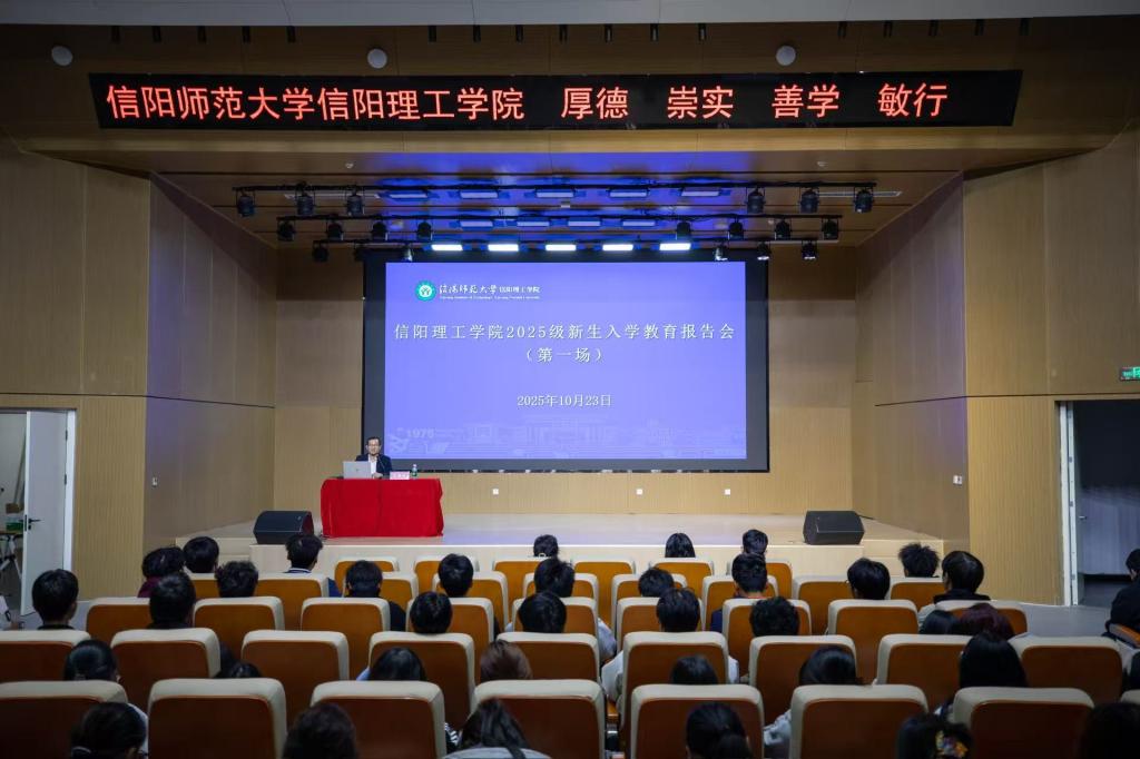 信阳师大新闻网讯 10月23日,信阳理工学院党工委常务副书记李振东在B2楼报告厅为2025级新生作题为“扣好人生第一粒扣子——大别山精神及其红廉价值教育”的首场辅导报告。该院全体辅导员及新生参加。大会由学生工作部部长耿晓菊主持。
