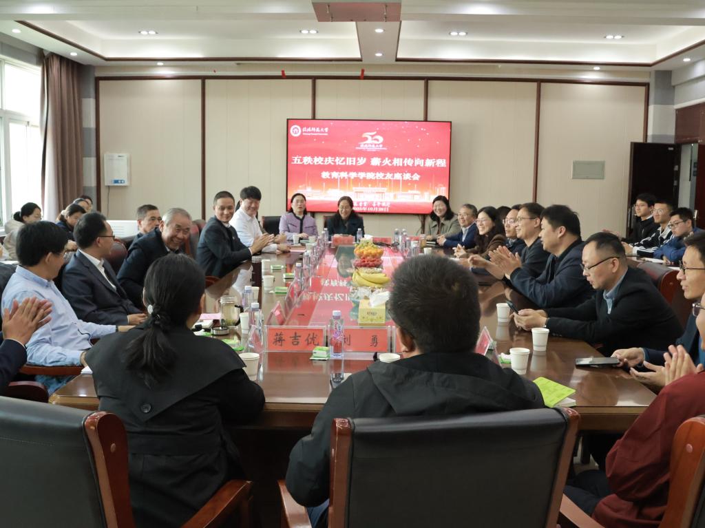 信阳师大新闻网讯 10月28日,教育科学学院召开“五秩校庆忆旧岁 薪火相传向新程”校友座谈会,该院党委书记房加帅、副书记缑星、副院长郭勇、校友及师生代表参加。座谈会由缑星主持。