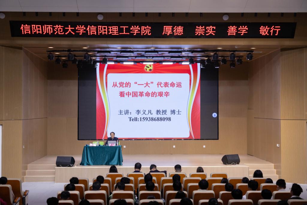 信阳师大新闻网讯 11月11日,信阳理工学院在B2楼报告厅举行“德育讲师团”和“银龄宣讲团”系列报告会。我校人文社科专家李义凡教授、杜超教授、刘守义教授为800余名师生作报告。该院党工委常务副书记李振东主持。