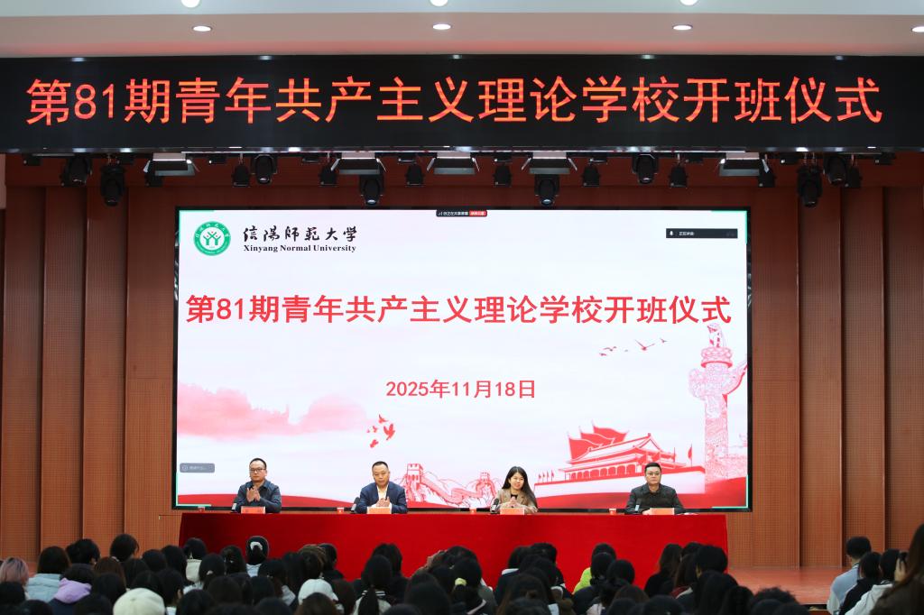 信阳师大新闻网讯 11月18日,信阳师范大学第81期青年共产主义理论学校开班仪式在逸夫楼报告厅举行。校党委常委、统战部部长李向阳,校团委书记常青,党委组织部副部长冀鹏,党委学生工作部副部长黄煌和500余名青校学员参加仪式。