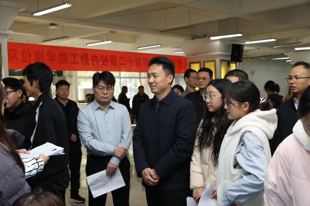 在双选会现场,朱晓东逐一走访各招聘展位,与用岗单位负责老师和应聘学生亲切交流,细致询问岗位设置、招聘进展及学生需求等情况。他强调,校内勤工助学工作不仅是帮助家庭经济困难学生缓解生活压力的重要民生举措,更是培养学生实践能力、责任意识和综合素质的关键育人平台。相关单位要进一步做好岗位管理与服务保障工作,加强岗前培训与过程指导,真正让学生在勤工助学实践中增长才干、锤炼品格,实现“经济资助”与“成长赋能”的有机统一。