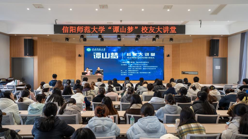 信阳师大新闻网讯 11月24日,“谭山梦”校友大讲堂第41期在博雅讲堂举行。我校校友刘静作了题为“做好情压管理,每天成功快乐”的报告,相关单位负责人和师生代表参加。活动由对外联络办公室主任耿劲松主持。