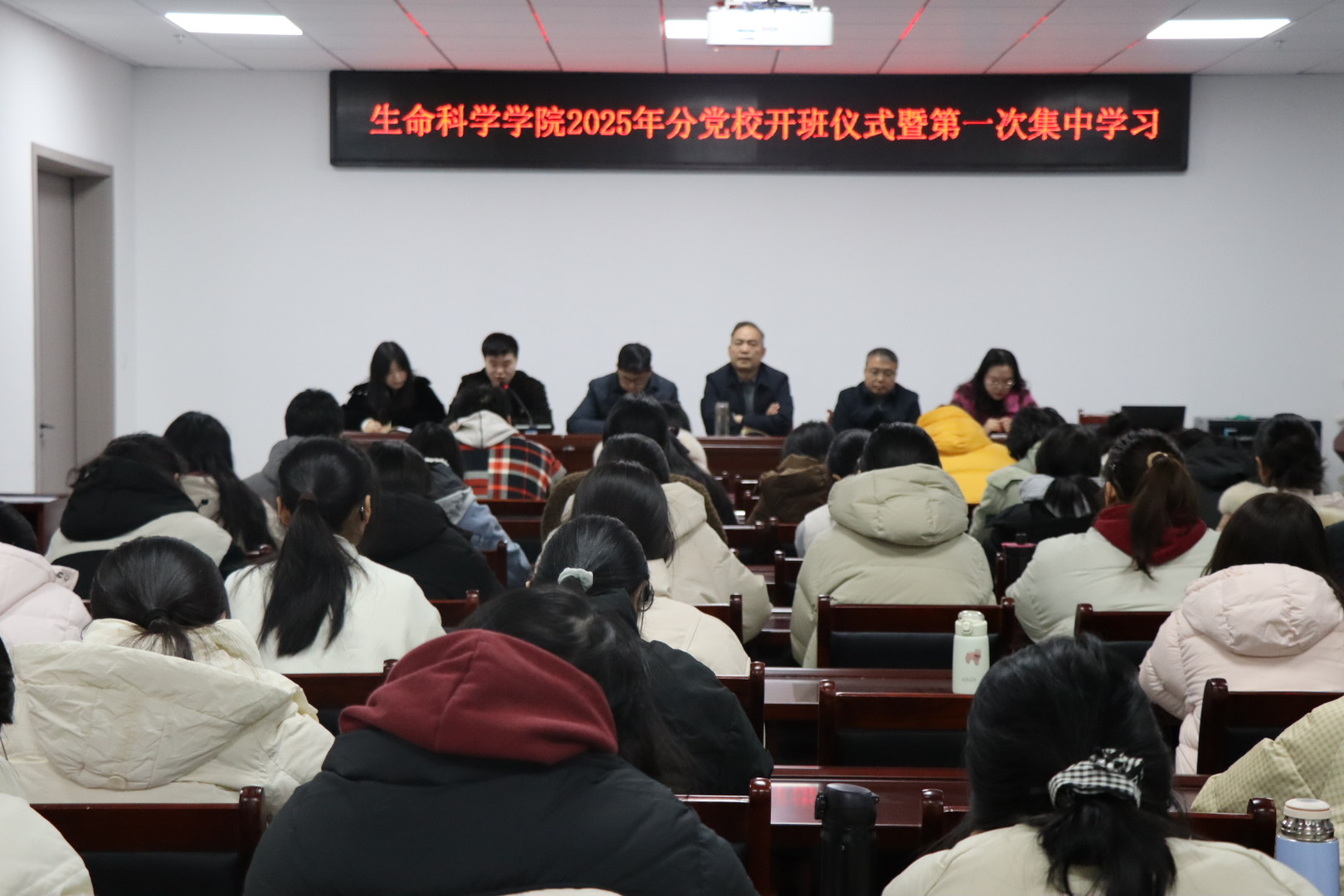 信阳师大新闻网讯 12月2日,生命科学学院分党校2025年下半年入党积极分子培训班举行开班仪式。该院领导班子成员、学工队伍和70名入党积极分子参加,党委书记李刚作开班动员暨首场专题辅导报告,党委副书记荣宪举主持仪式。