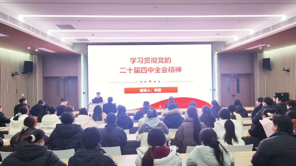 信阳师大新闻网讯 12月11日,淮河校区人文学部主任李蕊教授在第四报告厅作了深入学习贯彻党的二十届四中全会精神宣讲。校区师生党员和入党积极分子参加学习,宣讲会由党政办公室主任董玉刚主持。