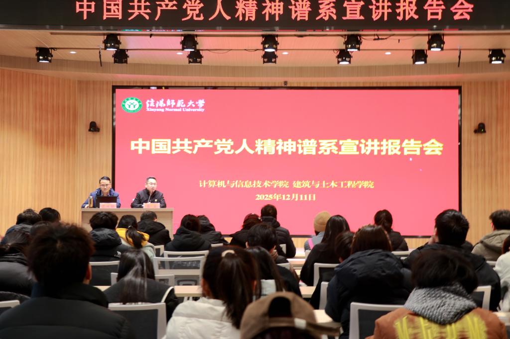 信阳师大新闻网讯 12月11日,计算机与信息技术学院和建筑与土木工程学院联合举办中国共产党人精神谱系专题宣讲会。计算机与信息技术学院党委书记熊炎、建筑与土木工程学院党委书记王永贵以及150余名师生代表参加学习。