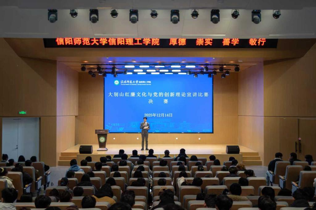 信阳师大新闻网讯 12月14日,信阳理工学院举办大别山红廉文化与党的创新理论宣讲比赛决赛。该院党工委常务副书记李振东,学生党支部书记,全体党员、入党积极分子、团员代表三百余人参加活动。