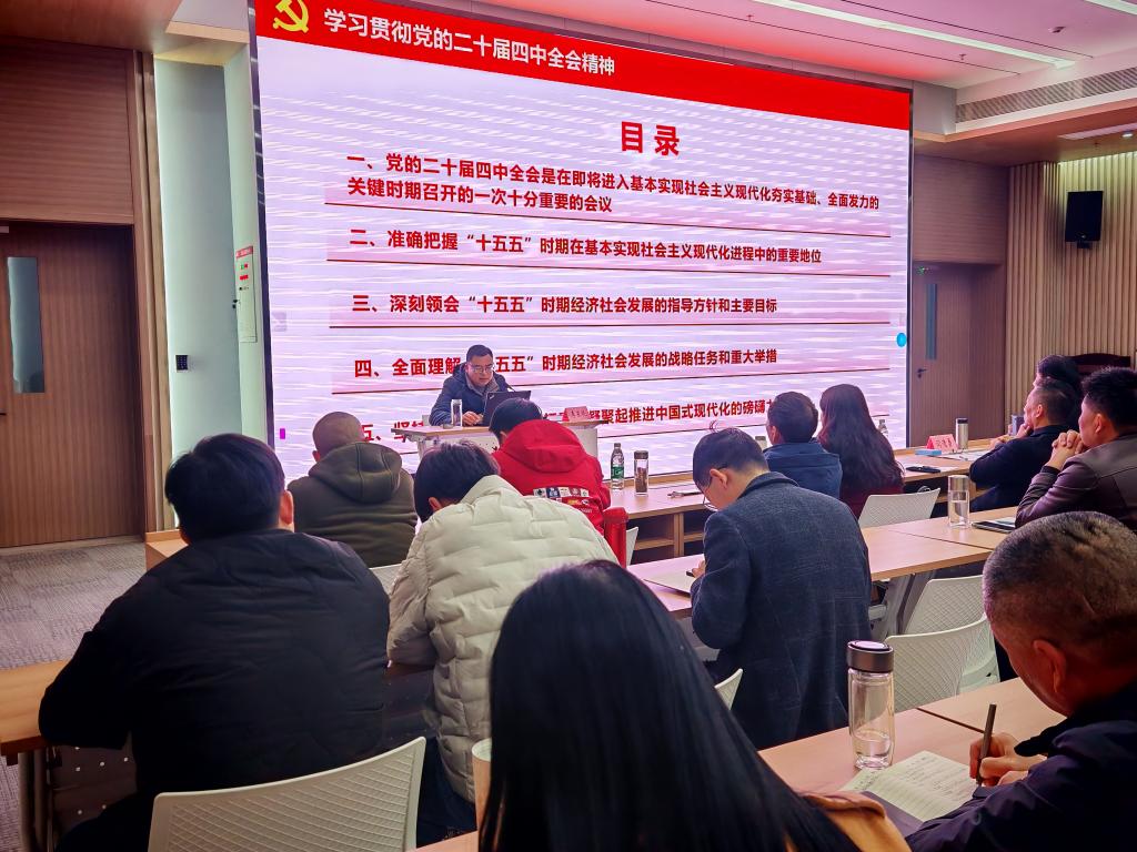 信阳师大新闻网讯 12月17日,淮河校区崇实书院直属党支部书记李东晓在图书馆第四报告厅为师生作党的二十届四中全会精神宣讲专题报告,书院全体辅导员及百余名学生现场聆听学习。