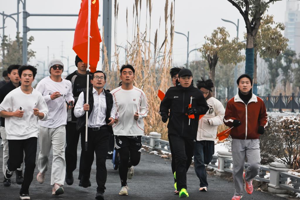 该院党工委常务副书记李振东作了热情洋溢的讲话,简要回顾了信阳理工学院过去一年的工作成绩,鼓励同学们积极参加体育锻炼,培育生活激情,坚定目标方向,以崭新的面貌迎接新年的到来。师生们从校园初心广场出发,先行绕校园跑步一周,然后从西门出发沿南昌大街、苏信大道、嘉兴大街、大学路,绕至豫东南大道、潢河东路、大学路、南昌大街,返回出发原点初心广场,全程十公里。一路上,师生们精神抖擞,高举鲜艳的理工学院院旗,在冬日暖阳下一路奔跑,犹如飞舞的长龙,穿梭于优美的校园和豫东南高新区宽阔的道路之间。欢声笑语与加油助威声此起彼伏,蓬勃的朝气与青春的活力尽情绽放,成为新年冬日一道亮丽动人的风景。师生们在奔跑中彼此鼓励、携手前行,用坚定的脚步丈量每一寸土地,以饱满的热情奔赴新的未来。