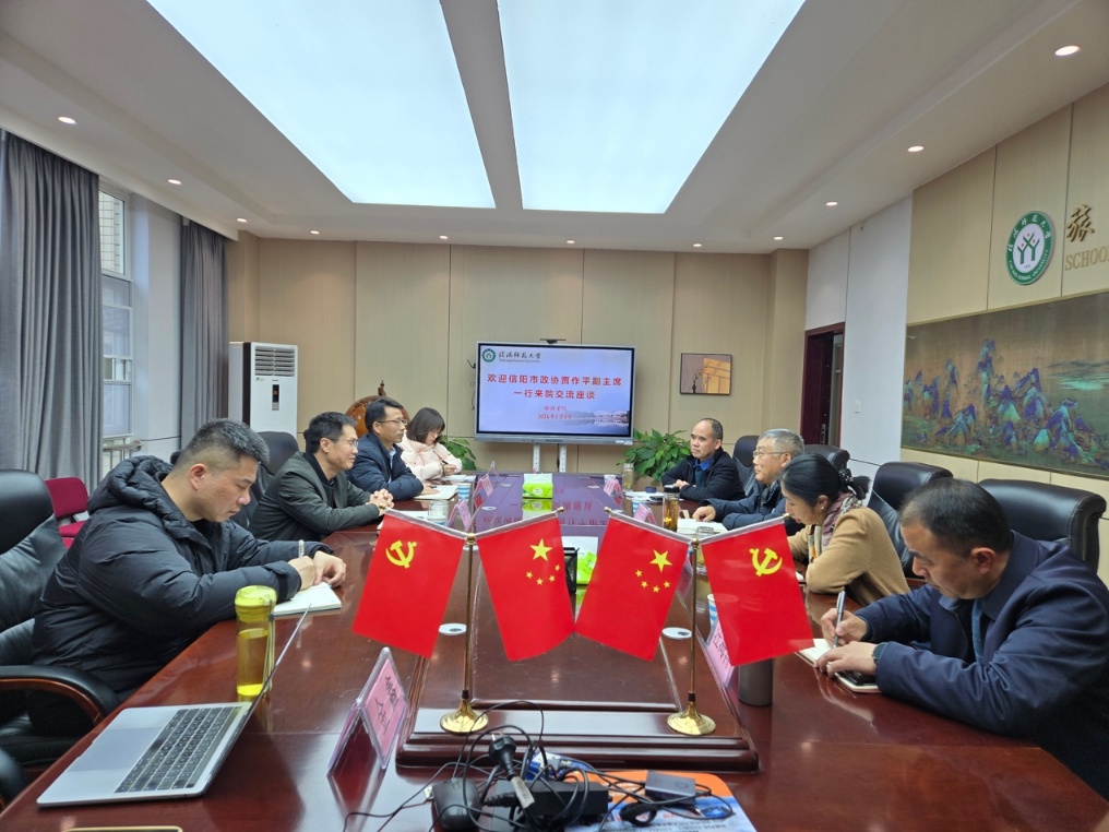 信阳师大新闻网讯 1月4日,信阳市政协副主席贾作平、市政协文史委主任熊凌翔、副主任何军、汪海洋一行到旅游学院,围绕信阳文化旅游发展资源及历史进程开展交流,谋划校地合作新领域。地理科学学院副院长(主持工作)颜俊、旅游学院院长高军波及相关领域博士10余人参加座谈。座谈会由高军波主持。
