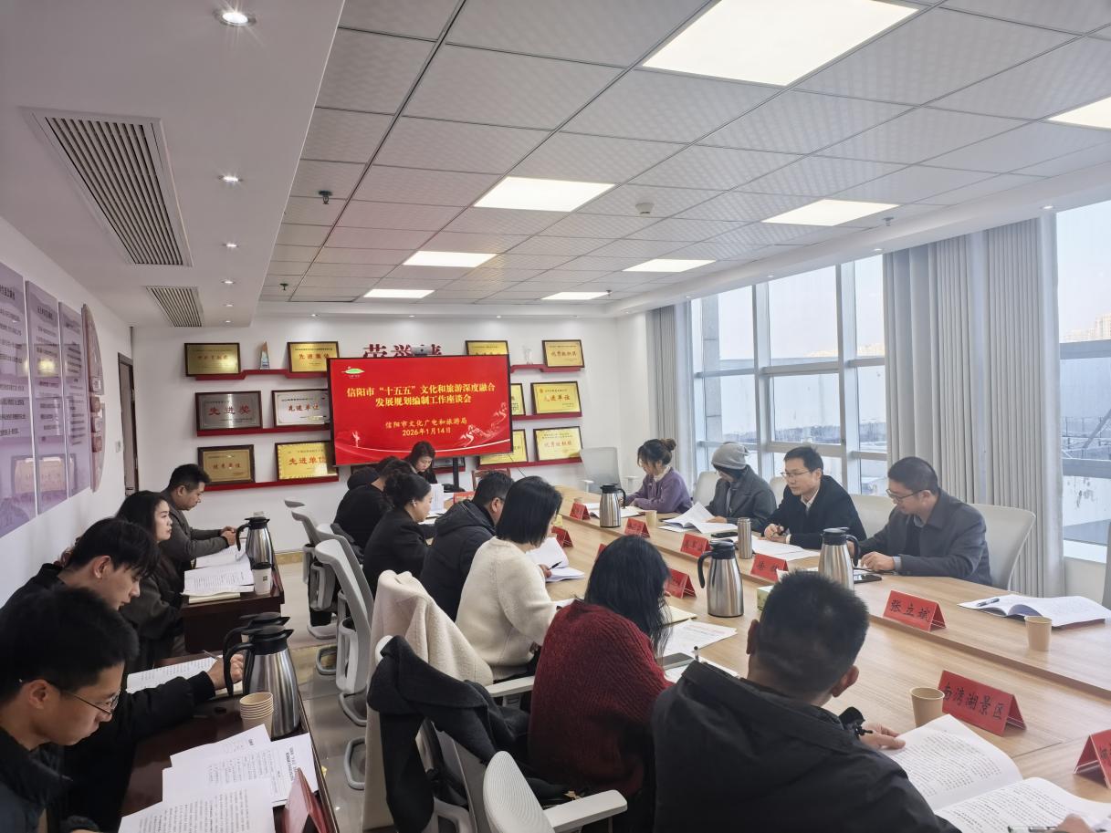 信阳师大新闻网讯 1月14日,旅游学院院长高军波教授及规划编制团队受邀参加信阳市“十五五”文化和旅游深度融合发展规划编制座谈会,与信阳市、浉河区、平桥区、羊山新区文广旅局、鸡公山管理区、南湾湖风景区文旅部负责人,以及鸡公山景区、南湾湖景区、何家寨露营基地、文新茶村等企业主管等30余人共同参会。座谈会由市文广旅局副局长徐辉主持。