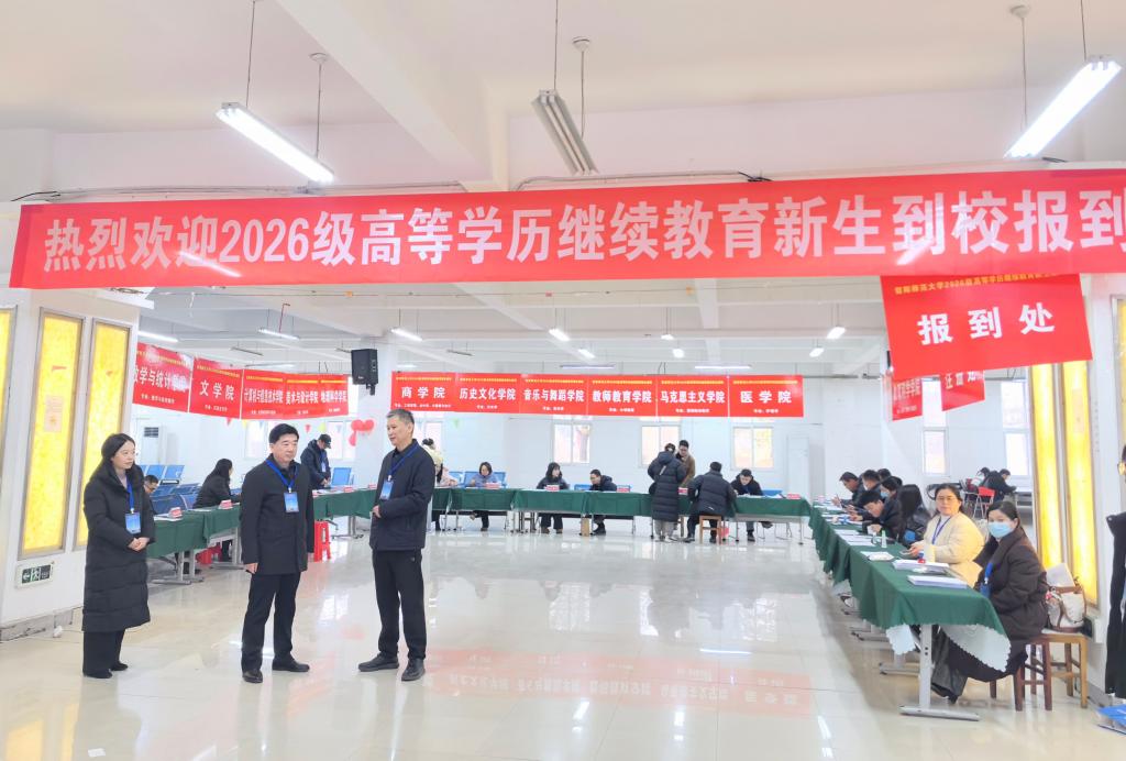 信阳师大新闻网讯 1月17日,2026级高等学历继续教育新生入学报到工作在谭山校区有序开展。副校长江玉安到现场指导工作,继续教育学院负责人陪同检查。