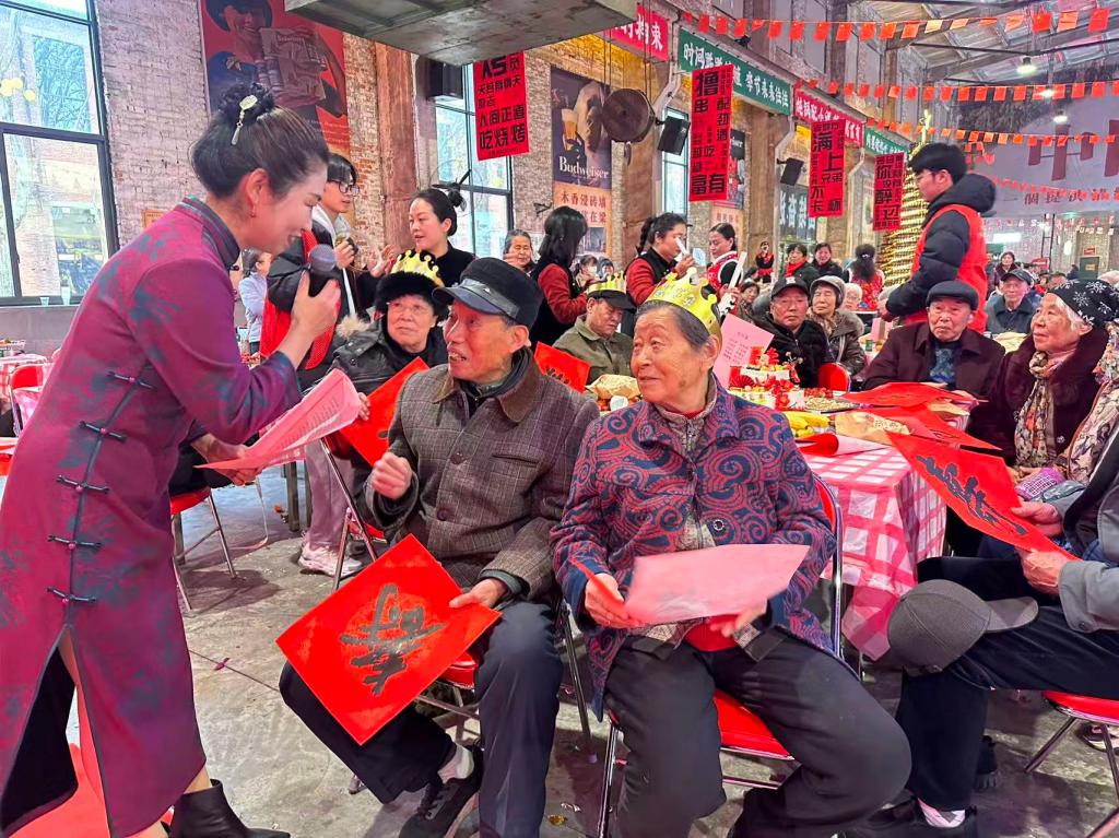 信阳师大新闻网讯 校地联动迎新春,翰墨真情暖基层。2月6日,美术与设计学院院长邹东升带队赴木机场文创园,与华森社区党支部联合开展“强基层送祝福”支部联支部活动。200余名社区居民欢聚一堂,共话新春,“春联送福、集体生日、歌舞晚会”等系列活动,为冬日社区注入温暖与活力。