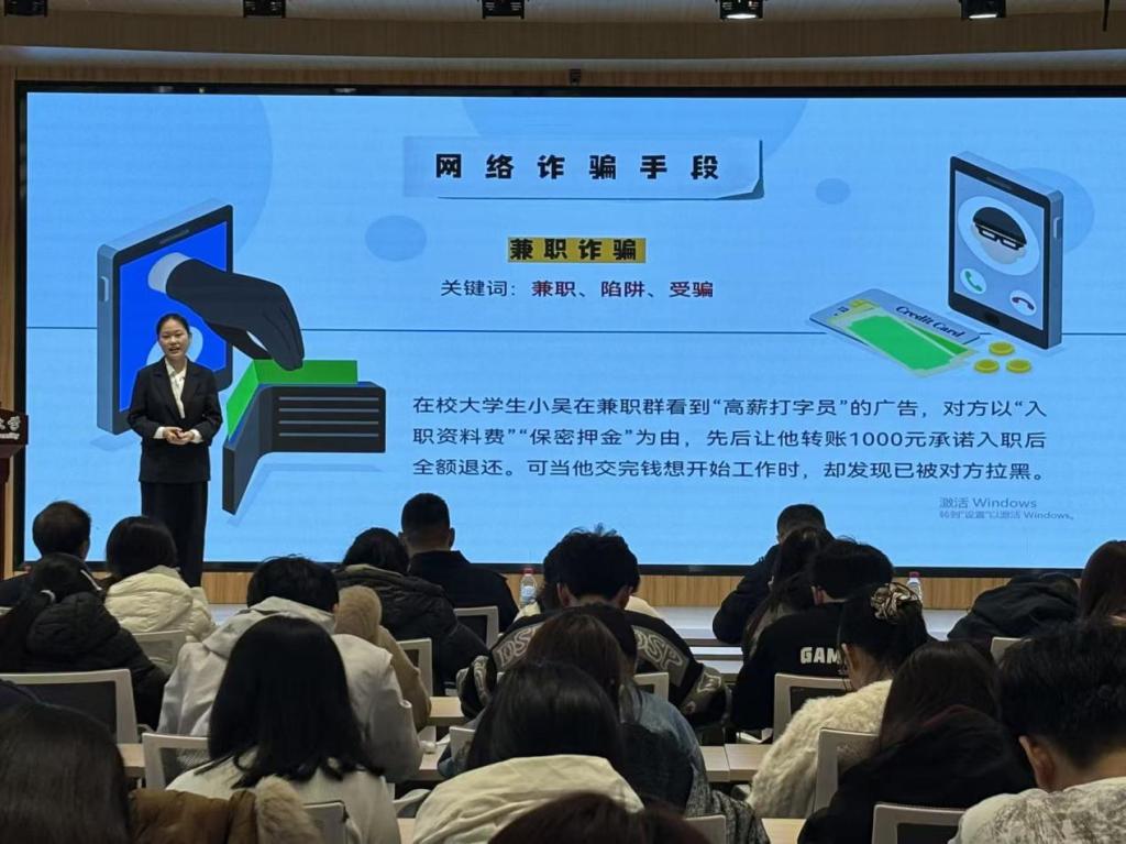 宣讲零距离,防骗记心间。组织各班开展反诈主题宣讲,宣讲员围绕刷单返利、冒充客服、网游交易等校园高发诈骗场景,详细拆解电信网络诈骗的常见手段、识别技巧与防范要点,并结合真实案例生动科普防骗知识,切实提升了同学们的风险防范意识与自我保护能力。
