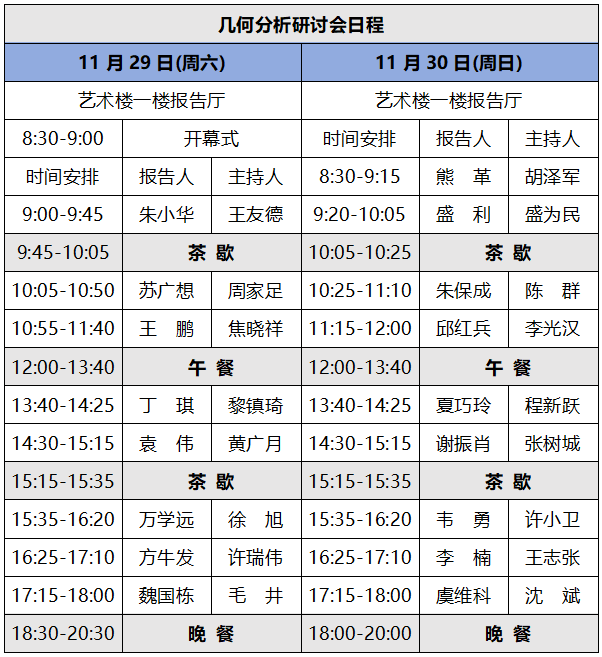 为促进几何分析及相关领域的学术交流,我校将于2025年11月28日—12月1日举办几何分析研讨会,11月28日报到(信阳中乐百花酒店),11月29日-30日会议报告,12月1日离开会议。会议将探讨几何分析及相关领域最新前沿问题的进展。希望会议能促进专家、青年研究者和研究生的交流与合作。